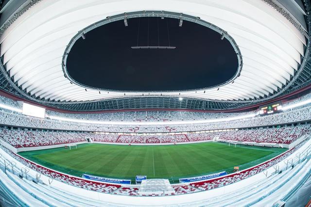 除文化特色外,场馆的科技含量与绿色理念同样亮眼,堪称现代体育建筑的“技术标杆”。其在全球首创双层铝网记忆结构大跨屋顶,配备国际标准的通风加热草坪与360度均匀体育照明系统;内场采用经典马鞍看台设计,配备了大功率LED光源,在色温、显色指数、复现指数等关键指标上表现卓越。灯具自带防眩光装置,兼具节能与瞬时启闭特性,既满足专业赛事照明需求,更达到高清转播级标准,将为球迷提供完美观赛体验。