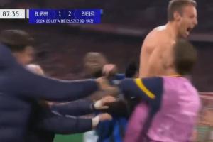 体育资讯04月09日讯 拜仁vs国米,第88分钟,弗拉泰西破门,激情庆祝!此时比分国米2-1!