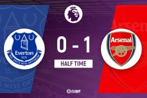 半场战罢,阿森纳暂1-0埃弗顿。